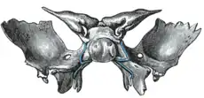 - Pterygoid processes of the sphenoides, directed downwards from the junction of the body and the greater wings.[4]