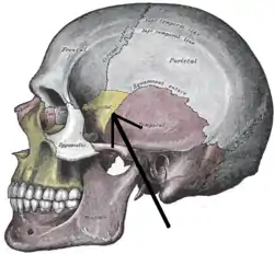 The sphenosquamosal suture is a cranial suture between the sphenoid bone and the squama of the temporal bone.