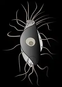 Spironemidae is a family of heterotrophic flagellates, in the group Hemimastigophora. They vary in size and shape from the ellipsoid Hemimastix amphikineta (14 × 7 μm) to the vermiform Spironema terricola (43 × 3 μm), and are united by the possession of two rows of cilia, called kineties.[1]