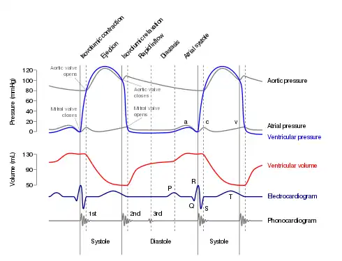 According to Harrison's Principles of Internal Medicine, "Normally, blood pressure falls during inspiration (equal or less than 10 mmHg), due to an increase in blood flow into the right ventricle with displacement of the interventricular septum to the left, decreasing left ventricular filling and cardiac output".[2]