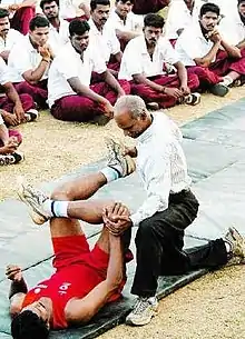 Athletic trainers are typically part of a sports medicine team in the US in particular, providing primary care, injury and illness prevention, wellness promotion, emergency care, therapeutic intervention and rehabilitation to injuries.[49] When an athlete is injured, an athletic trainer is key to treatment and rehabilitation working closely with the athlete throughout rehabilitation.[50] Athletic trainers are often the ones who assess the injury first and provide initial care.