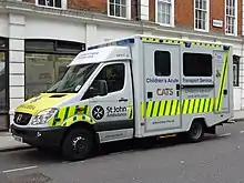 St John Ambulance supplies ambulance services in England, providing patient transport services to over 100,000 people a year, and working in partnership with NHS trusts, private healthcare groups, local authorities and individuals.[31]