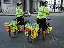 ![]() St John Ambulance Cycle Response Unit (CRU) volunteers at the London Marathon. | |