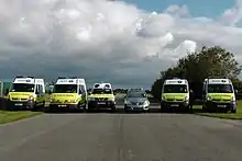 Ambulance training, open to both existing First Aid volunteers and external candidates, takes the form of a 6-month training program with volunteers qualifying as Emergency Ambulance Crew (EAC). A small number of paid staff are also trained to the same standard to provide an organisational personnel baseline to fulfil core NHS and specialist contracts.[32] The Emergency Ambulance Crew training program encompasses a combination of classroom and distance learning alongside practical assessments, written exams and a portfolio. Course content is in line with that of NHS Emergency Ambulance Crew and includes medical gasses administration, airway management (including supraglottic devices), intermediate life support, trauma care, obstetrics, paediatrics, major incident response, emergency medications administration and in-depth anatomy and physiology.[42][43] Once qualified, EAC's must spend a minimum of 12 months (reduced to 6 months for paid staff) as Newly Qualified Emergency Ambulance Crew (NQEAC) before being allowed to practice autonomously. Volunteer Emergency Ambulance Crew are deployed as frontline 999 crews in support of the NHS, as ambulance crews to events and as part of specific community response programs such as night time economy support.[32] An additional 4-week Level 3 CERAD blue light driving is available upon qualifying as an EAC and all SJA ambulance crews must be staffed by at least one emergency response driver.