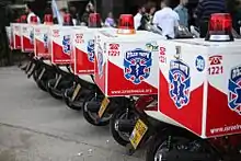 The Star of Life is used in many Spanish speaking nations, where it is known as La Estrella De La Vida.[19] In Argentina, Sistema de Atención Médica de Emergencia (SAME), the capital district ambulance service, uses a green and slightly rounded version of the Star of Life in their logo. In Brazil, the Star of Life is incorporated into the national emergency service's visual identity standards.[20] Brazil's ABNT Standard NBR 14561 for ambulance design makes direct reference to being based on the American Star of Life vehicle. Ambulances which do not comply with the Brazilian standard are prohibited from displaying the Star of Life or the word “RESGATE” (rescue).[21]