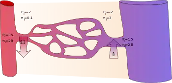 Applying the classic Starling equation, it had long been taught that continuous capillaries filter out fluid in their arteriolar section and reabsorb most of it in their venular section, as shown by the diagram.[4]