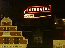It is particularly known for the large advertisement sign which has been a prominent local landmark at Slussen in Stockholm since 1909. The Stomatol Sign, made from lightbulbs, not neon tubes, was the first animated advertisement sign in Sweden (one can see the toothpaste being squeezed out of the tube). It was originally placed on the Katarinahissen elevator, but was moved in 1933 to the roof of the nearby building at Klevgränd 1 B. Technical problems forced the electricity to be shut down between 1963 and 1972 and from 1981 until 1986.