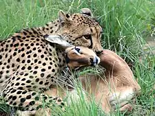 A cheetah strangling an impala, Timbavati Game Reserve, South Africa