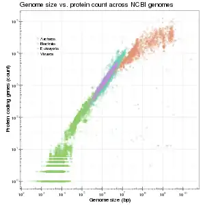 Genome streamlining theory states that certain prokaryotic genomes tend to be small in size in comparison to other prokaryotes, and all eukaryotes, due to selection against the retention of non-coding DNA.[2][1] The known advantages of small genome size include faster genome replication for cell division, fewer nutrient requirements, and easier co-regulation of multiple related genes, because gene density typically increases with decreased genome size.[2] This means that an organism with a smaller genome is likely to be more successful, or have higher fitness, than one hindered by excessive amounts of unnecessary DNA, leading to selection for smaller genome sizes.[2]