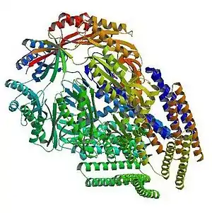 There are seven subfamilies within the TRP superfamily: TRPC (canonical), TRPV (vanilloid), TRPM (melastatin), TRPP (polycystin), TRPML (mucolipin), TRPA (ankyrin), and TRPN (NOMPC-like).[55] TRP proteins typically consist of six transmembrane domains, S1, S2, S3, S4, S5, and S6, with a pore between S5 and S6. These contain intracellular N and C termini, which form tetramers[63] and vary in length and domain.[55] Within the channel there are ankyrins, which are structural proteins that mediate protein-protein interactions, and are thought to contribute to the tether model of stretch-activated channel opening. NOMPC, identified in D. melanogaster mechanotransduction and a member of the TRPN subfamily, contains a relatively high number of ankyrins.[57]