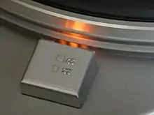 In electronic versions, the perforated disc is replaced by a lamp capable of emitting brief and rapid flashes of light. Typically a gas-discharge or solid-state lamp is used, because they are capable of emitting light nearly instantly when power is applied, and extinguishing just as fast when the power is removed.