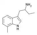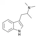 α-Alkyltryptamines are a group of substituted tryptamines which possess an alkyl group, such as a methyl or ethyl group, attached at the alpha carbon, and in most cases no substitution on the amine nitrogen.[15][16][17] α-Alkylation of tryptamine makes it much more metabolically stable and resistant to degradation by monoamine oxidase, resulting in increased potency and greatly lengthened half-life.[17] This is analogous to α-methylation of phenethylamine into amphetamine.[17]
