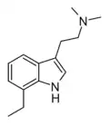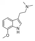 - Glennon RA, Schubert E, Jacyno JM, Rosecrans JA (November 1980). "Studies on several 7-substituted N,N-dimethyltryptamines". Journal of Medicinal Chemistry. 23 (11): 1222–6. doi:10.1021/jm00185a014. PMID 6779006.