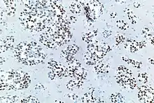 Sulfatide levels in these cancer lines and tissues may vary. For example, the levels of sulfatide are much lower in undifferentiated small cell carcinoma tissues and primary lung squamous cell carcinoma tissues in humans than in primary lung adenocarcinoma tissue in humans.[3] In human ovarian cancers, sulfatide levels are much higher in malignant ovarian cancers than in benign ovarian cancers.[2][3] Other cancers such as Wilms’ tumor show no expression of sulfatide. Therefore, it appears that such increased levels of sulfatide are not universal in every form of cancer, and more experimentation must be done to confirm that elevated levels of sulfatide are not just artifacts of cultured cancer cell lines.[3]