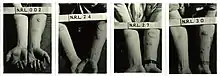 - Iyriboz Y (2004). "A Recent Exposure to Mustard Gas in the United States: Clinical Findings of a Cohort (n = 247) 6 Years After Exposure". MedGenMed. 6 (4): 4. PMC 1480580. PMID 15775831. Shows photographs taken in 1996 showing people with mustard gas burns.