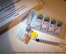 Glaxo patents for sumatriptan expired in February 2009. At that time, Imitrex sold for about $25 a pill.[32] Par Pharmaceutical then introduced generic versions of sumatriptan injection (sumatriptan succinate injection) 4- and 6-mg starter kits and 4- and 6-mg filled syringe cartridges, and 6-mg vials soon after.[33]