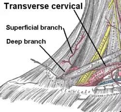 ![]() Superficial and deep branches from the transverse cervical artery | |
