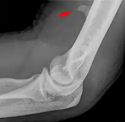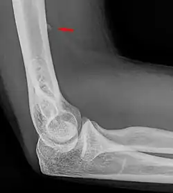 ![]() Larger supracondylar process seen on a lateral radiograph of the elbow | |