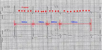 Atrial fibrillation: Red dots show atrial fibrillation activity.