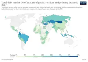 This target has one Indicator: Indicator 17.4.1 is the "Debt service as a proportion of exports of goods and services".[7]