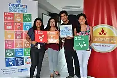 Young people holding SDG banners in Lima, Peru