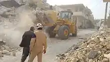 As well as providing rescue services, SCD undertakes repair works such as securing damaged buildings and reconnecting electrical and water services, clearing roads, teaching children about hazards from unexploded ordnance, as well as firefighting and winter storm relief.[55][56][57] Sometimes described as the most dangerous job in the world,[58][22] SCD operations involve risk from being active in a war-zone. By late 2016, 159 White Helmets had been killed since the organisation's inception.[56]