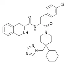 THIQ is a drug used in scientific research, which is the first non-peptide agonist developed that is selective for the melanocortin receptor subtype MC4.[1][2] In animal studies, THIQ stimulated sexual activity in rats,[3] but with little effect on appetite or inflammation.[4] This supports possible application of MC4 selective agonists for the treatment of sexual dysfunction in humans,[5] although THIQ itself has poor oral bioavailability and a short duration of action so improved analogues will need to be developed.[6]