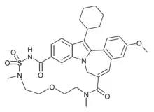 TMC-647055 is an experimental antiviral drug which was developed as a treatment for hepatitis C, and is in clinical trials as a combination treatment with ribavirin and simeprevir. It acts as a NS5b polymerase inhibitor.[1][2][3]