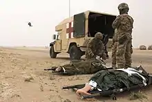 Tactical Combat Casualty Care (TCCC or TC3) are the United States military guidelines for trauma life support in prehospital combat medicine, designed to reduce preventable deaths while maintaining operation success. The TCCC guidelines are routinely updated and published by the Committee on Tactical Combat Casualty Care (CoTCCC), which is part of the Defense Committees on Trauma (DCoT) division of the Defense Health Agency (DHA).[1] TCCC was designed in the 1990s for the Special Operations Command medical community. Originally a joint Naval Special Warfare Command and Special Operations Medical Research & Development initiative, CoTCCC developed combat-appropriate and evidence-based trauma care based on injury patterns of previous conflicts. The original TCCC corpus was published in a Military Medicine supplement in 1996.[2] TCCC has since become a Department of Defense (DoD) course, conducted by National Association of Emergency Medical Technicians.[3]