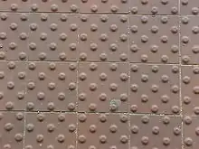 One of the first architectural standards for buildings requiring the use of detectable warning surfaces was the City of London's Facility Accessibility Design Standards (FADS). The difference from the American ADA standards is the two different types of tactile surfaces required.[9] At stairs, detectable warning surfaces are required (long bars that in the United States are called "directional bars" but are placed at perpendicular to the main path of travel), whereas offset truncated dome detectable warning surfaces are used for ramps, elevated platforms (like those found at the edges of boarding platforms in transit facilities), and at other areas where pedestrian ways blend with vehicular ways.