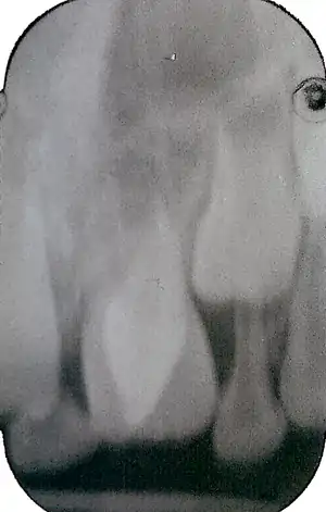 Although talon cusp may not appear serious, and in some people may be completely benign, it can cause clinical, diagnostic and functional problems, and alters the appearance of a person's teeth. The condition was first described by W.H. Mitchell in 1982 and named by J. Kimball Mellor B.S., D.D.S. and Louis W. Ripa, D.D.S., M.S.[4] due to its similar appearance to an eagle's talon. Some sources define a talon cusp as an extra cusp which extends at least half the distance between the cementoenamel junction and the incisal edge of the tooth.[5] Other sources classify all enlarged cingula as talon cusps, and classify them according to the degree of enlargement.[5]