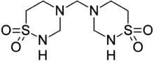 Taurolidine is an antimicrobial that is used to prevent infections in catheters.[1] Side effects and the induction of bacterial resistance is uncommon.[1] It is also being studied as a treatment for cancer.[2]