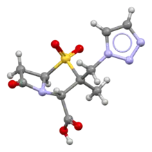 Tazobactam is a pharmaceutical drug that inhibits the action of bacterial β-lactamases, especially those belonging to the SHV-1 and TEM groups. It is commonly used as its sodium salt, tazobactam sodium. In simple terms, it is an ingredient that can be added to certain antibiotics to make them less vulnerable to bacteria's antimicrobial resistance.