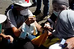 A paramedic tending to an opposition protester during the 2014 Venezuelan protests