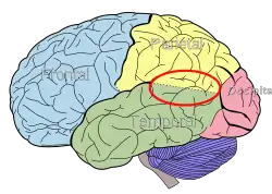 The left temporoparietal junction (lTPJ) contains both Wernicke's area and the angular gyrus, both prominent anatomical structures of the brain that are involved in language cognition, processing, and comprehension of both written and spoken language. Steven Pinker discusses this brain region, theorising that it underlies an amodal 'language of thought' or Mentalese. The lTPJ, in this account, takes in observations from external environments, such as conversations, makes connections in the brain regarding memories or incidents and then converts those thoughts and connections to written and spoken language. Pinker's full account of this is explained in The Language Instinct: How the Mind Creates Language. The lTPJ also plays an important role in reasoning of other's beliefs, intentions, and desires.[9] Activation of the lTPJ was observed in patients processing mental states such as beliefs when an fMRI was used on patients as they were asked to make inferences regarding the mental states of others such as lying. This study was further supplemented by a study which identified that lesions to the left TPJ can impair cognitive processes specifically involved in the inference of someone else's belief, intention, or desire. Individuals with lesions in the lTPJ were no longer able to correctly identify when someone was lying or insinuating a false sense of belief or desire.[10] The lTPJ is also involved in the processing of associating and remembering the names of individuals and objects.[11]
