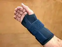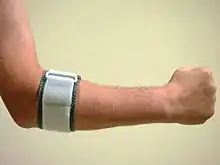 Orthosis is a device externally used on the limb to improve the function or reduce the pain. Orthotics may be useful in tennis elbow, however long-term effects are unknown.[37] There are two main types of orthoses prescribed for this problem: counterforce elbow orthoses and wrist extension orthoses. Counterforce orthosis has a circumferential structure surrounding the arm. This orthosis usually has a strap which applies a binding force over the origin of the wrist extensors. The applied force by orthosis reduces the elongation within the musculotendinous fibers. Wrist extensor orthosis maintains the wrist in the slight extension.