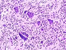 | Micrograph of diffuse TGCT, also known as pigmented villonodular synovitis. H&E stain. | |