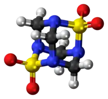 Tetramethylenedisulfotetramine (TETS) is an organic compound used as a rodenticide (rat poison).[2] It is an odorless, tasteless white powder that is slightly soluble in water, DMSO and acetone, and insoluble in methanol and ethanol. It is a sulfamide derivative. It can be synthesized by reacting sulfamide with formaldehyde under acidic condition.[3] When crystallized from acetone, it forms cubic crystals with a melting point of 255–260 °C.