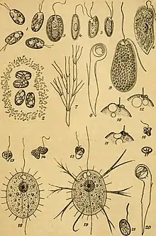 The genus was first identified in 1899 by Robert Lauterborn, a German protozoologist.[2] Since then several new species have been discovered within the genus. However, analyses of ribosomal DNA have indicated that Thaumatomastix may in fact be a paraphyletic group,[1] and have resulted in seven species (T. formosa, T. fragilis, T. fusiformis, T. groenlandika, T. igloolica, T. spinosa, and T. splendida) being reclassified under the genus Reckertia in 2011.[3] It has also been recently suggested that the genus be split into three separate genera, with the others being Ovaloplaca and Thaumatospina.[4]