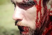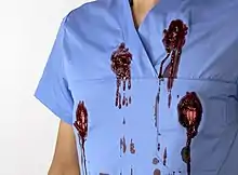 The art of moulage uses theatrical blood in applying mock injuries for the purpose of training emergency response teams and other medical and military personnel.