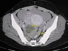 Further work up involves imaging, such as a pelvic ultrasound or CT scan.[7] Theca lutein cysts with diameters over 6 cm in size can be seen through these imaging modalities.[18] Benign ovarian cysts and complex cysts that are potentially malignant are distinguishable via ultrasounds.[19] Labs are also collected to evaluate leukocytes and tumor markers, such as beta-hCG and cancer antigen 125 (CA125).[20]