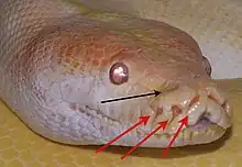 Positions of the pit organs (arrowed in red) on a python, relative to its nostril (black arrow)