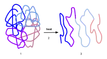 Protein engineering can be used to enhance the thermostability of proteins. A number of site-directed and random mutagenesis techniques,[14][15] in addition to directed evolution,[16] have been used to increase the thermostability of target proteins. Comparative methods have been used to increase the stability of mesophilic proteins based on comparison to thermophilic homologs.[17][18][19][20] Additionally, analysis of the protein unfolding by molecular dynamics can be used to understand the process of unfolding and then design stabilizing mutations.[21] Rational protein engineering for increasing protein thermostability includes mutations which truncate loops, increase salt bridges[22] or hydrogen bonds, introduced disulfide bonds.[23] In addition, ligand binding can increase the stability of the protein, particularly when purified.[24] There are various different forces that allow for the thermostability of a particular protein. These forces include hydrophobic interactions, electrostatic interactions, and the presence of disulfide bonds. The overall amount of hydrophobicity present in a particular protein is responsible for its thermostability. Another type of force that is responsible for thermostability of a protein is the electrostatic interactions between molecules. These interactions include salt bridges and hydrogen bonds. Salt bridges are unaffected by high temperatures, therefore, are necessary for protein and enzyme stability. A third force used to increase thermostability in proteins and enzymes is the presence of disulfide bonds. They present covalent cross-linkages between the polypeptide chains. These bonds are the strongest because they’re covalent bonds, making them stronger than intermolecular forces.[25] Glycosylation is another way to improve the thermostability of proteins. Stereoelectronic effects in stabilizing interactions between carbohydrate and protein can lead to the thermostabilization of the glycosylated protein.[26] Cyclizing enzymes by covalently linking the N-terminus to the C-terminus has been applied to increase the thermostability of many enzymes. Intein cyclization and SpyTag/SpyCatcher cyclization have often been employed.[27][28]