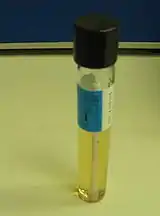 Thioglycolate broth is a multipurpose, enrichment, differential medium used primarily to determine the oxygen requirements of microorganisms. Sodium thioglycolate in the medium consumes oxygen and permits the growth of obligate anaerobes.[1] This, combined with the diffusion of oxygen from the top of the broth, produces a range of oxygen concentrations in the medium along its depth. The oxygen concentration at a given level is indicated by a redox-sensitive dye such as resazurine that turns pink in the presence of oxygen.
