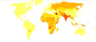 In 2015, fire and heat resulted in 67 million injuries.[7] This resulted in about 2.9 million hospitalizations and 176,000 deaths.[8][12] Among women in much of the world, burns are most commonly related to the use of open cooking fires or unsafe cook stoves.[6] Among men, they are more likely a result of unsafe workplace conditions.[6] Most deaths due to burns occur in the developing world, particularly in Southeast Asia.[6] While large burns can be fatal, treatments developed since 1960 have improved outcomes, especially in children and young adults.[13] In the United States, approximately 96% of those admitted to a burn center survive their injuries.[14] The long-term outcome is related to the size of burn and the age of the person affected.[2]