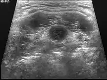 Rarely (in less than 1% of cases), cancer may be present in a thyroglossal duct cyst.[6] These tumors are generally papillary thyroid carcinomas,[6] arising from the ectopic thyroid tissue within the cyst.[7][8]