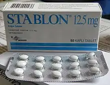 Tianeptine, sold under the brand names Stablon, Tatinol, and Coaxil among others, is an atypical tricyclic antidepressant which is used mainly in the treatment of major depressive disorder, although it may also be used to treat anxiety, asthma, and irritable bowel syndrome.[1][2][3]