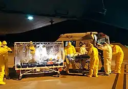On 30 January, the first two cases of COVID-19 were confirmed in Rome. A Chinese couple, originally from Wuhan, the epicenter of the virus, who had arrived in Italy on 23 January via Milan Malpensa Airport, travelled from the airport to Verona, then to Parma, arriving in Rome on 28 January. The next afternoon, they developed a cough, and by evening the man had a fever; the couple were taken to the Lazzaro Spallanzani National Institute for Infectious Diseases where they tested positive for SARS-CoV-2 and were hospitalised.[2][3] On 2 February, a team from the same institute composed of scientists Maria Rosaria Capobianchi, Francesca Colavita, and Concetta Castilletti isolated the genomic sequence of the virus and uploaded it to GenBank.[4][5]