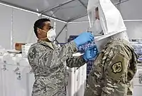 During April 2020, Sisolak activated the Nevada National Guard to help deliver medical supplies.[30][32] Within a few weeks, he announced that an additional 700 members of the National Guard would join the coronavirus efforts. Most of them would be stationed in Las Vegas, where they would set up alternate care facilities, help with food banks, and provide medical support.[32][33]