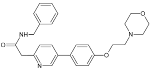 Tirbanibulin, chemically known as N-benzyl-2-(5-(4-(2-morpholinoethoxy)phenyl) pyridine-2-yl) acetamide, is a microtubule and non–ATP-competitive inhibitor.[5] The drug in various ways mimics the mechanisms of chemotherapy[9] by suspending the protooncogenic Src tyrosine kinase signaling pathway. Notably, it promotes G2/M arrest during cell cycle, upregulates p53, and triggers apoptosis via caspase-3 stimulation and poly (ADP-ribose) polymerase cleavage.[5]